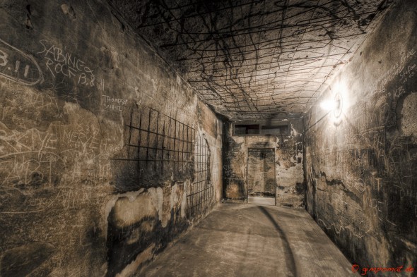 Ausgebrannter NS-Filmbunker im Flughafen Tempelhof